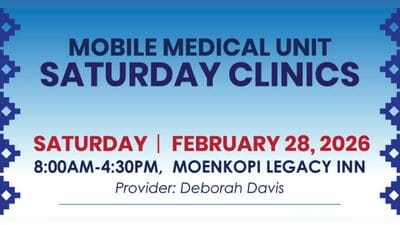 February 28 and March 7 at Moenkopi Legacy Inn, no appointment needed. More information: 928-283-2607.